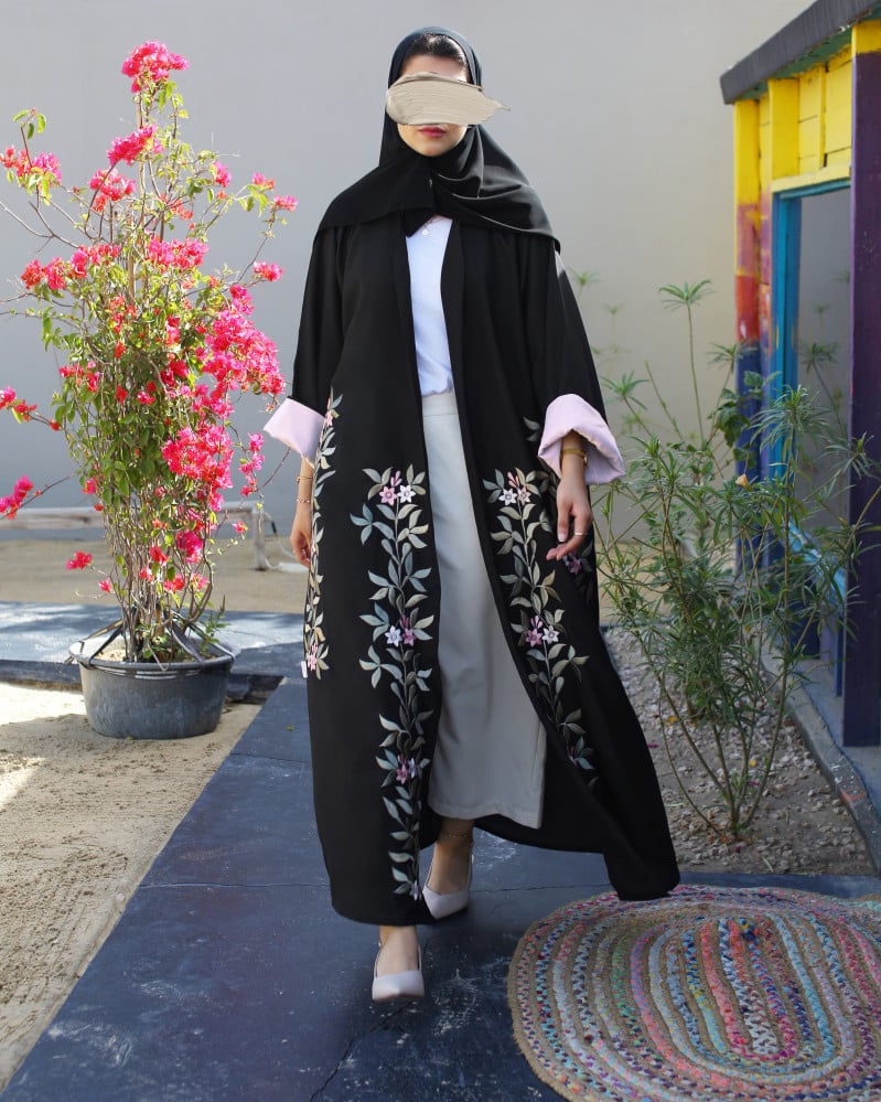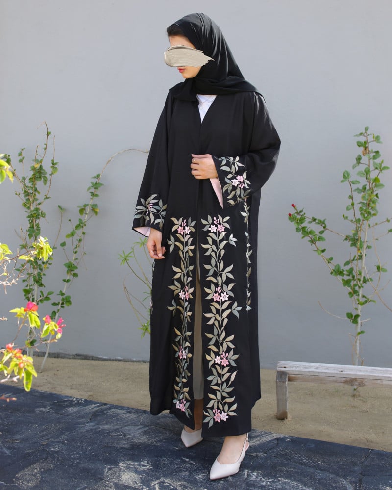 نوع القماش : كتان صيفي بتطريز ورود يدوي مع بطانة حرير داخل الأكمام