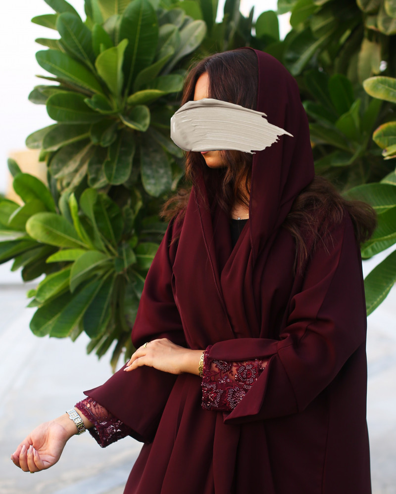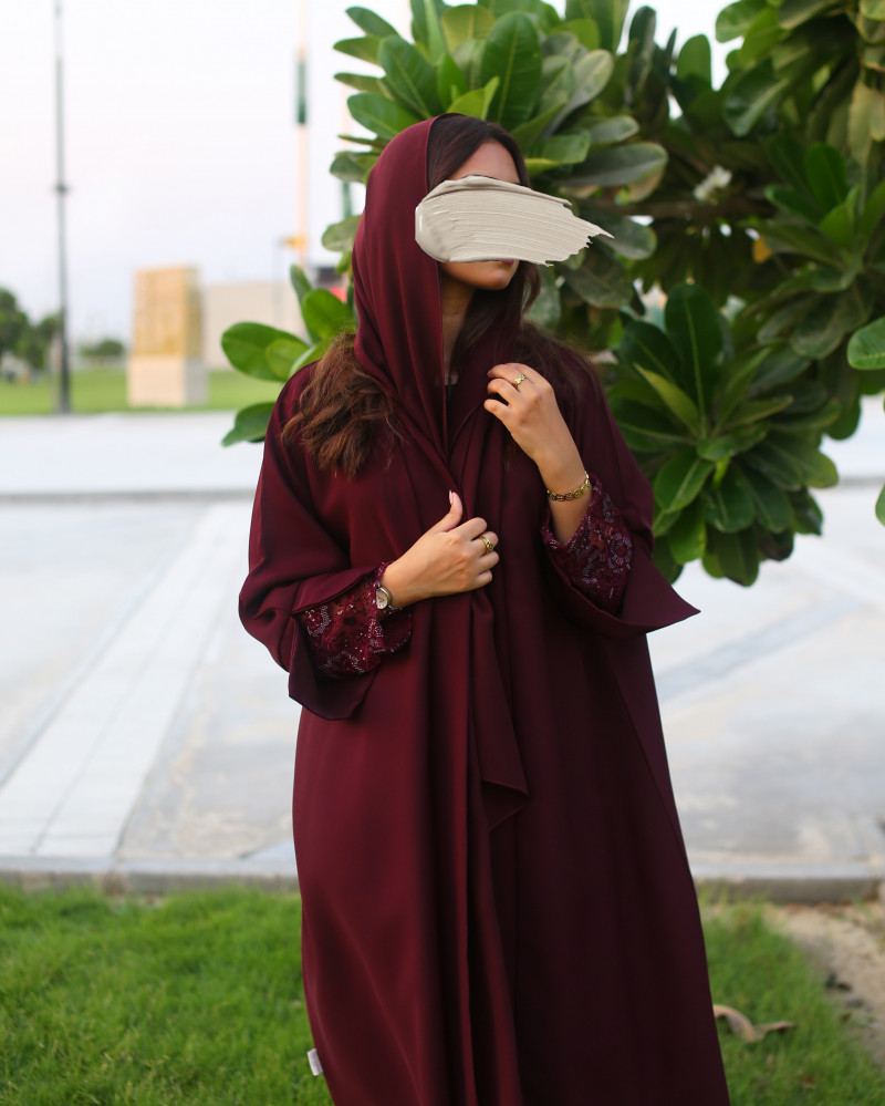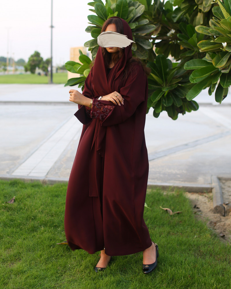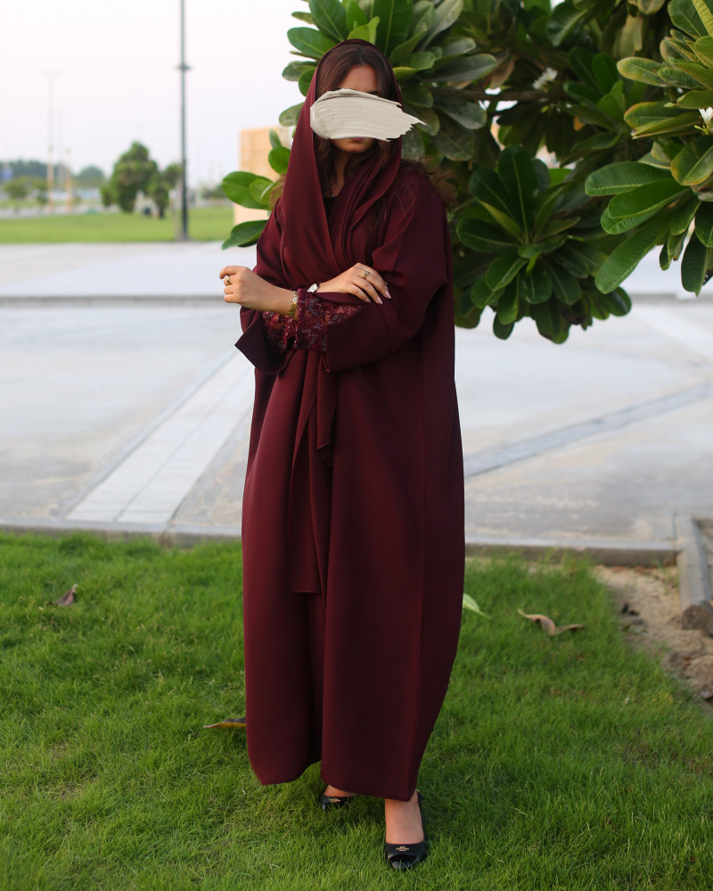 نوع القماش : كريب سيراميك مع تل مطرز بشك يدوي في الأكمام