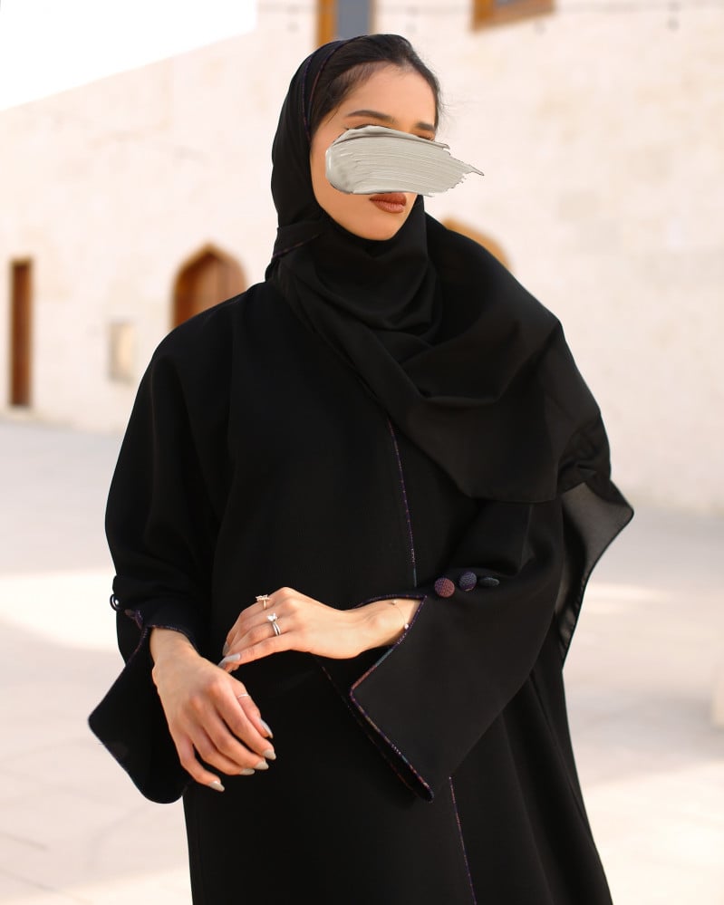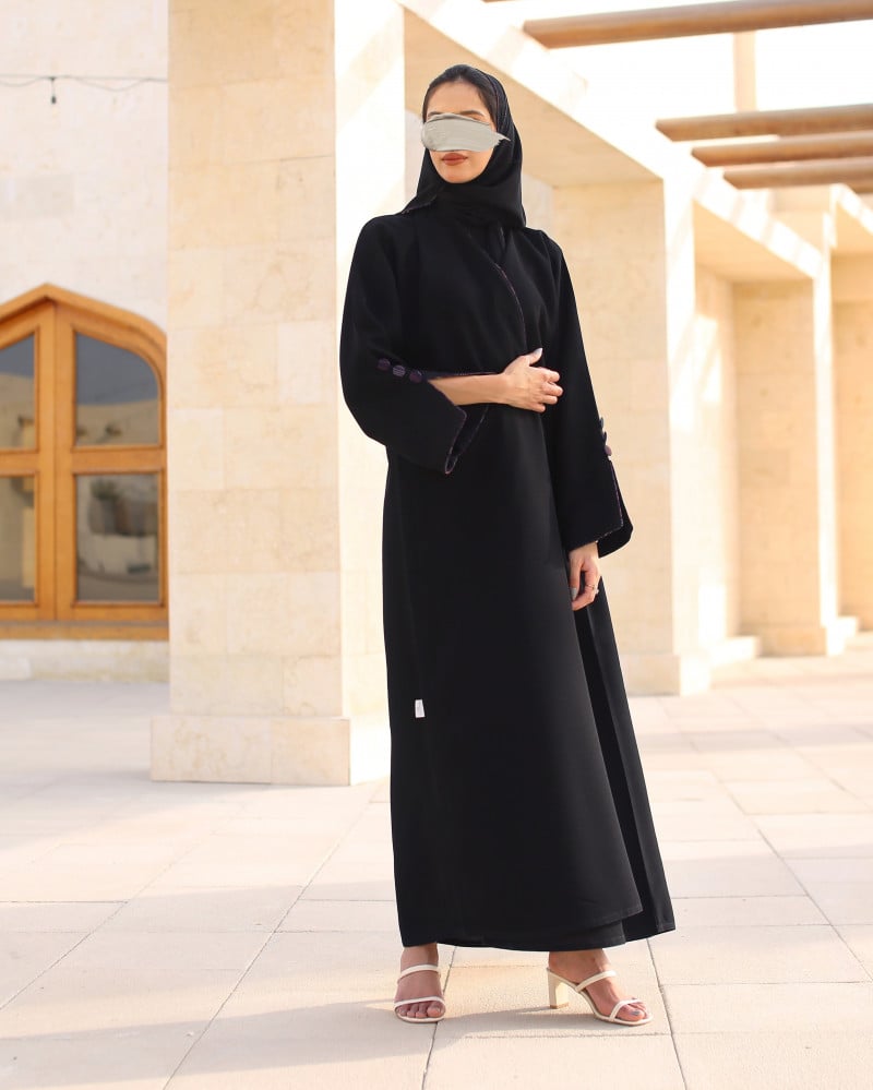 نوع القماش : أسود فاحم مزين بخطوط قطن وازرار
