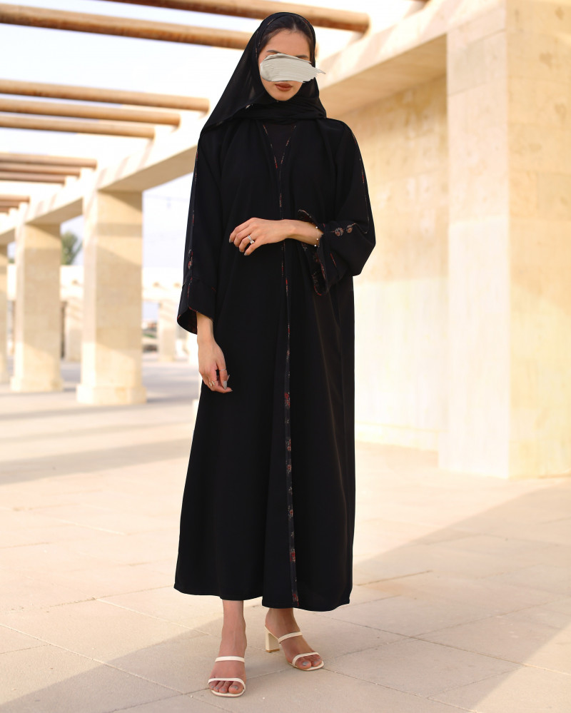 نوع القماش : أسود فاحم مزين بخطوط قطن مشجر مع أكمام مبطنة