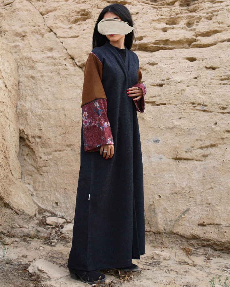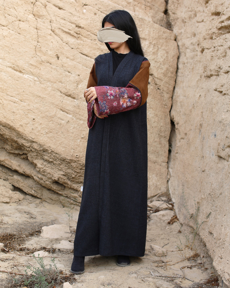 عباية شتوية مميزة بثلاث خامات مناسبة لفصل الشتاء ، مزينة بطبعات ورود في الأكمام