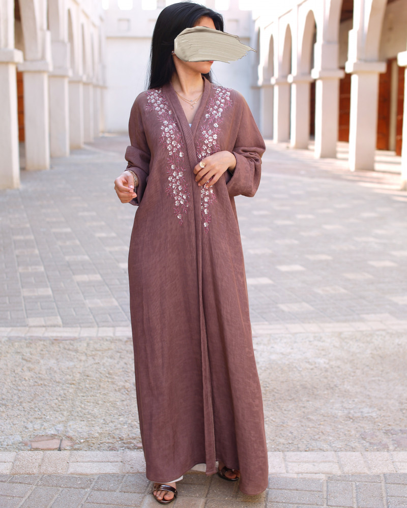 عباية مناسبات أنيقة مع شك وتطريز يدوي