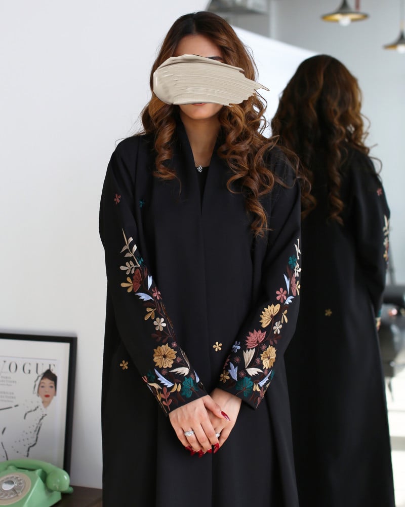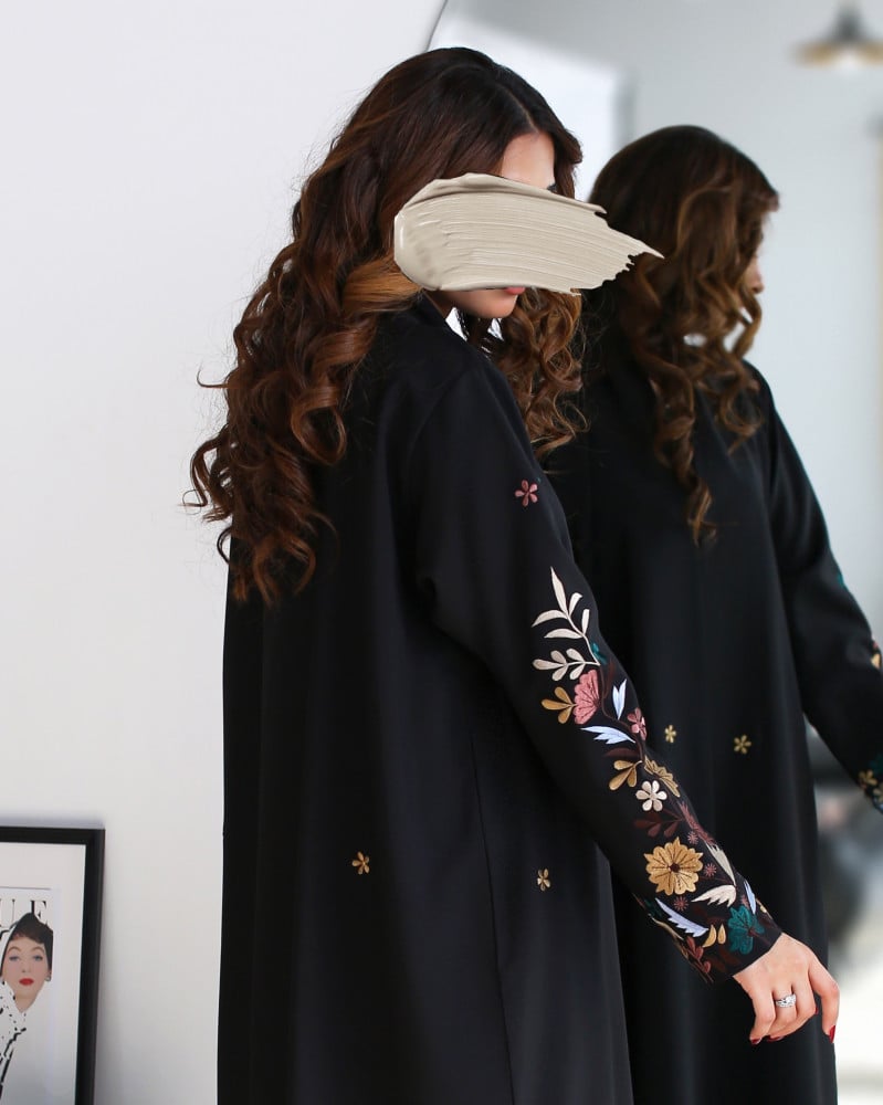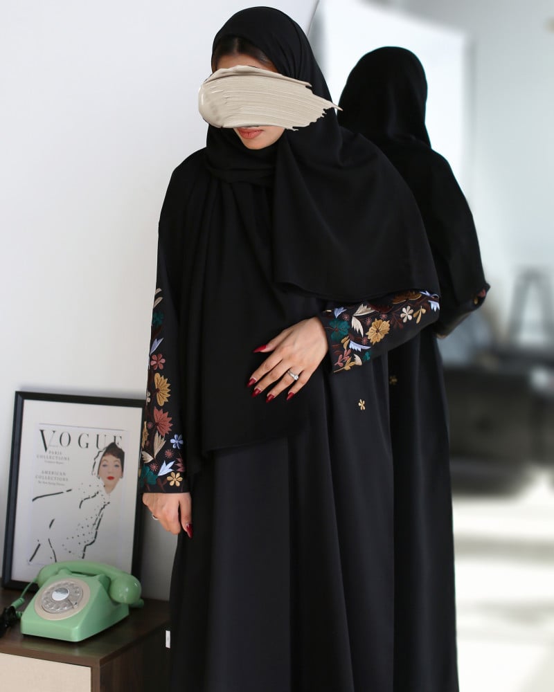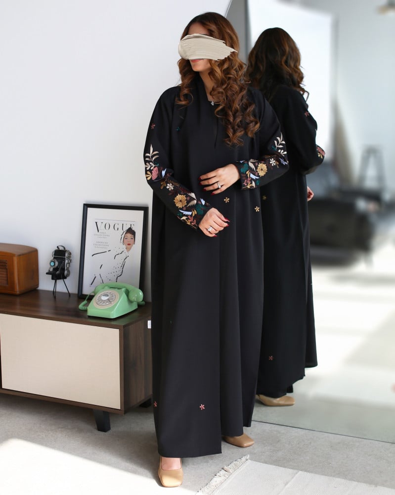 عباية صيفية سوداء أنيقة بتطريز زهور